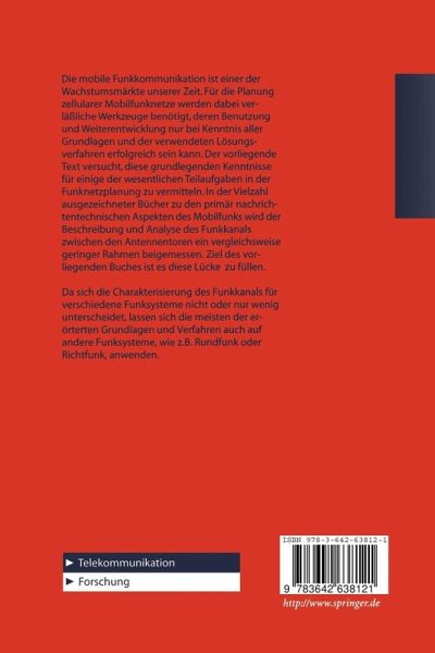 Die mobile Funkkommunikation ist einer der Wachstumsmärkte unserer Zeit. Für die Planung zellularer Mobilfunknetze werden dabei verläßtliche Werkzeuge benötigt, deren Benutzung und Weiterentwicklung nur bei Kenntnis aller Grundlagen und der verwendeten Lösungsverfahren erfolgreich sein kann. Der vorliegende Text versucht, diese grundlegenden Kenntnisse für einige der wesentlichen Teilaufgaben in der Funknetzplanung zu vermitteln. In der Vielzahl ausgezeichneter Bücher zu den primär nachrichtentechnischen Aspekten des Mobilfunks wird der Beschreibung und Analyse des Funkkanals zwischen den Antennentoren ein vergleichsweise geringer Rahmen beigemessen. Ziel des vorliegenden Buches ist es, diese Lücke zu füllen. Da sich die Charakterisierung des Funkkanals für verschiedene Funksysteme nicht oder nur wenig unterscheidet, lassen sich die meisten der erörterten Grundlagen und Verfahren auch auf andere Funksysteme, wie z.B. Rundfunk oder Richtfunk, anwenden.