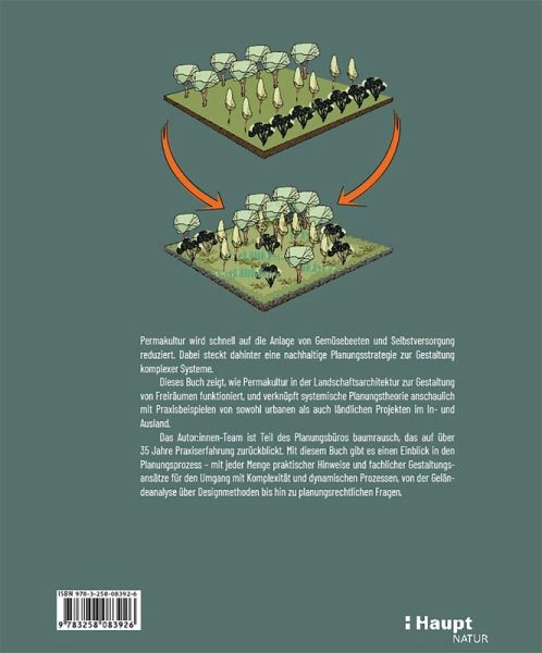 Permakultur wird schnell mit der Anlage von Gemüsebeeten und Selbstversorgung in Verbindung gebracht. Dabei handelt es sich um eine nachhaltige Planungsstrategie zur Gestaltung komplexer Systeme, für die es bereits den «Alternativen Nobelpreis» gab.Dieses Buch zeigt, wie Permakultur in der Landschaftsarchitektur zur Gestaltung von Freiräumen funktioniert, und verknüpft systemische Planungstheorie anschaulich mit Praxisbeispielen von sowohl urbanen als auch ländlichen Projekten im In- und Ausland.Permakultur erweist sich hierbei als eine wirkungsvolle Herangehensweise, die dazu auffordert, natürliche Systeme und ihre Bestandteile im Kontext zu beobachten und zu verstehen sowie über den Tellerrand des eigenen Fachbereichs hinauszuschauen. Sie eröffnet vielfältige Lösungswege für die jeweilige Situation, bevor wir zu einer Gestaltung kommen.Das Autorenteam ist Teil des Planungsbüros baumrausch, das auf über 35 Jahre Praxiserfahrung zurückblickt und mit diesem Buch einen Einblick in den Planungsprozess gibt - mit jeder Menge praktischer Hinweise und fachlicher Gestaltungsansätze für den Umgang mit Komplexität und dynamischen Prozessen, von der Geländeanalyse über Designmethoden bis hin zu planungsrechtlichen Fragen.Gastbeiträge von Fachleuten zu Ökologie, Prozessbegleitung, Recht und Architektur schaffen einen zusätzlichen Dialog zwischen Fachplanung und Permakultur und beleuchten Anwendung und Nutzen der Planungsstrategie.