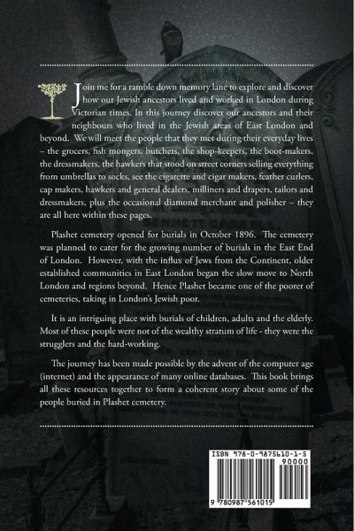 This is a wonderful new resource book for those carrying out research into their Jewish roots in England. Plashet Cemetery was opened in 1896 and contains the burials of many of the residents of the East End of London. These are not the famous people of London - rather the general citizens. Enjoy a walk thru the streets of East London with local boot-makers, cap-makers, cigarette and cigar makers, mattress makers, tailors and seamstresses, feather curlers and even the occasional diamond broker. Explore what life was like for the Jews of the East End of London at the end of the 19th Century.