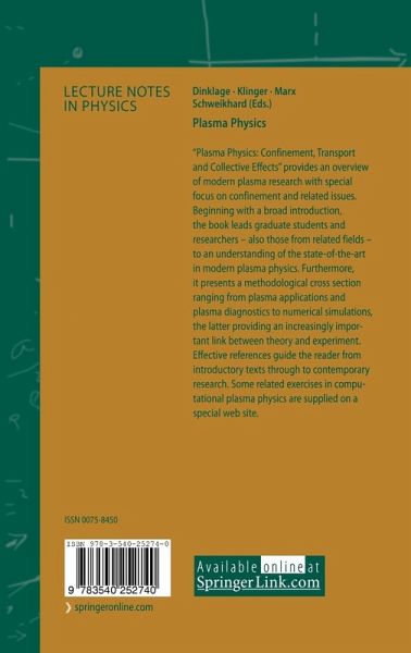 Plasma Physics: Confinement, Transport and Collective Effects provides an overview of modern plasma research with special focus on confinement and related issues. Beginning with a broad introduction, the book leads graduate students and researchers - also those from related fields - to an understanding of the state-of-the-art in modern plasma physics. Furthermore, it presents a methodological cross section ranging from plasma applications and plasma diagnostics to numerical simulations, the latter providing an increasingly important link between theory and experiment. Effective references guide the reader from introductory texts through to contemporary research. Some related exercises in computational plasma physics are supplied on a special web site