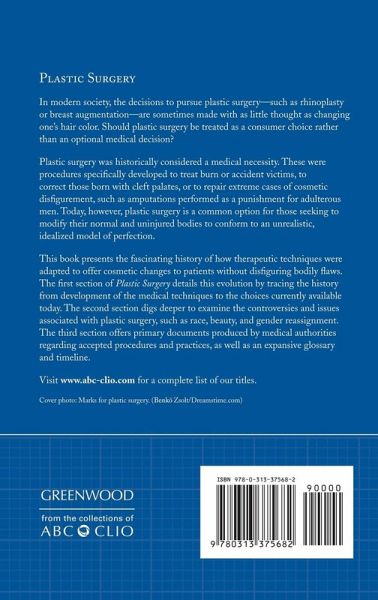 This book provides a complete history of plastic surgery, a description of the modern techniques and choices available, and an overview of the controversies surrounding the choice to voluntarily change your physical appearance. Plastic surgery was historically considered a medical necessity. These were procedures specifically developed to treat burn or accident victims, to correct those born with cleft palates, or to repair extreme cases of cosmetic disfigurement, such as amputations performed as a punishment for adulterous men. Today, however, plastic surgery is a common option for those seeking to modify their normal and uninjured bodies to conform to an unrealistic, idealized model of perfection. This book presents the fascinating history of how therapeutic techniques were adapted to offer cosmetic changes to patients without disfiguring bodily flaws. The first section of Plastic Surgery details this evolution by tracing the history from development of the medical techniques to the choices currently available today. The second section digs deeper to examine the controversies and issues associated with plastic surgery, such as race, beauty, and gender reassignment. The third section offers primary documents produced by medical authorities regarding accepted procedures and practices, as well as an expansive glossary and timeline.