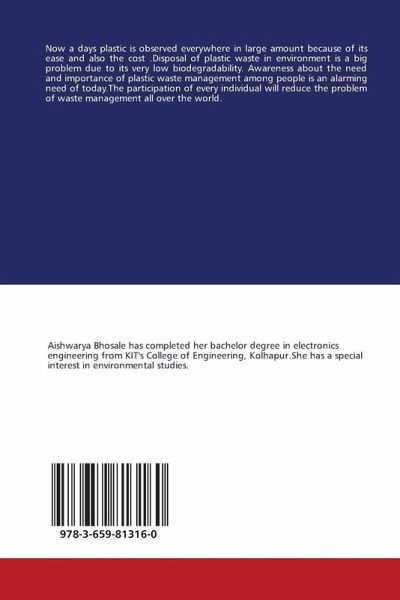 Now a days plastic is observed everywhere in large amount because of its ease and also the cost .Disposal of plastic waste in environment is a big problem due to its very low biodegradability. Awareness about the need and importance of plastic waste management among people is an alarming need of today.The participation of every individual will reduce the problem of waste management all over the world.