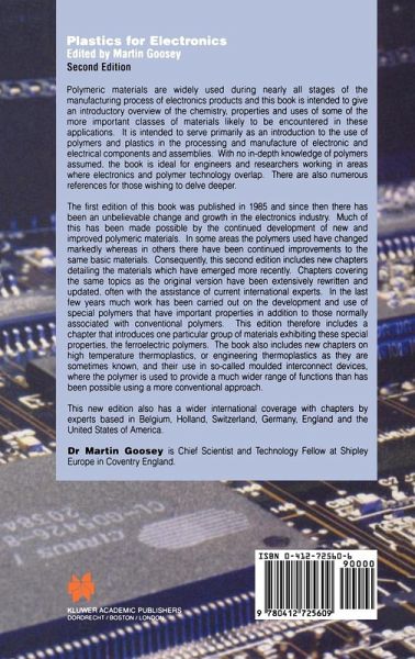 Polymeric materials are widely used during nearly all stages of the manufacturing process of electronics products and this book is intended to give an introductory overview of the chemistry, properties and uses of some of the more important classes of materials likely to be encountered in these applications. It is intended to serve primarily as an introduction to the use of polymers and plastics in the processing and manufacture of electronic and electrical components and assemblies. With no in-depth knowledge of polymers assumed, the book is ideal for engineers and researchers working in areas where electronics and polymer technology overlap. There are also numerous references for those wishing to delve deeper.