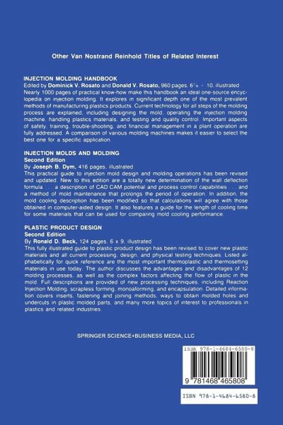 1. Introduction to Plastics Processing.- Molding Methods.- Systems of Molding.- Tools for Plastics.- References.- 2. Basic Mold Types and Features.- Injection Molding Machines.- Compression and Transfer Presses.- Continuous Extrusion Machines.- Blow Molding Machines.- Vacuum Forming Machines.- Rotational Molding Machines.- General Mold Types.- Other Tools for Plastics.- Specific Types of Molds.- Mold Construction Nomenclature.- Special Mold Classifications.- References.- 3. Tool-Making Processes, Equipment and Methods.- Cut-Off Equipment.- Metal Cutting Processes (Machining).- Metal Displacement Processes.- Metal Erosion Processes.- Casting Processes.- Metal-Deposition Process.- Miscellaneous Processes.- Steps in Mold Finishing.- Measurement of Surface Finish, Molds and Parts.- References.- 4. Materials for Mold Making.- Steel.- Steel Forgings.- Machinability.- Heat Treatment.- Tempering.- Annealing.- Stress Relieving.- Hardness Penetration.- Mold Steel Requirements.- Selecting the Steel.- Standard Mold Components.- Alloy Steels.- Stainless Steel.- Maraging Steels.- Steel for Machined Molds.- Hobs and Hobbing.- Hob Design.- Hobbing Steels.- Nonferrous Materials for Molds.- Electroformed Cavities.- Tool Steel Castings.- Powdered Metal Components.- Plastic Mold Cavities.- Surface Treatment.- Thermal Barriers for Molds.- Pointers.- References.- 5. Design, Drafting and Engineering Practice.- Principles and Rules of Design.- Engineering and Design Procedures.- Dimensioning Mold Drawings.- Mold Stamping.- Tool Strength.- Shrink Fit Allowances.- Mold Pins.- Other Mold Parts.- Temperature Control Media and Methods.- Hobbed Cavities and Plungers.- Opposed Cavities and Balanced Molds.- Surface Finishes and Textured Molds.- References.- 6. Compression Molds.- Compression Molding.-Design of Hand Mold.- Design of 12-Cavity Semiautomatic Mold.- Spring-Box Molds.- Loading Shoe and Stripper Plate Molds.- Positive Molds.- Semipositive Molds.- Subcavity Gang Molds.- Wall Bracket Mold.- Mold Assembly.- Automatic Compression Molds.- Special Design Features.- Large Molds.- Side-Ram Molds.- Laminated Mold Construction.- Other Compression Mold Considerations.- References.- 7. Transfer and Injection Molds for Thermosets.- Transfer Molding.- Materials for Transfer Molding.- Plunger Transfer Molds.- Product Design Considerations.- Plunger Transfer Mold Design.- Transfer Tube (Loading Space Required).- Transfer Pressure.- Runner Systems.- Gating Transfer Molds.- Plunger Transfer Mold (Example) of Base and Cover.- Standard Mold Frames for Transfer Molds.- Injection Molding of Thermosetting Materials.- Runnerless Injection-Compression Molds.- Encapsulation.- References.- 8. Injection Molds for Thermoplastics.- Injection Equipment.- Projected Area Press Capacity.- Design Considerations.- Types of Molds.- Flow Resistance in the Heater Systems.- Hot Manifold Systems for Thermoplastics.- Types of Operation.- Ejection or Knockout Systems.- Runner Systems.- Gating Systems.- Hot Edge Gating.- Valve Gating.- Double shot Molding.- Venting.- Cooling.- Sprue Bushings.- Sprue Pullers.- Cavities.- Designing Injection Molds.- Standard Mold Bases.- Standard Mold Bases and Components.- Very Large Injection Molds.- References.- 9. Cold Mold Design.- References.- 10. Extrusion Dies and Tools for Thermoplastics.- General Concepts of Die Design.- Analytical Relationships: Flow Rates versus Pressure.- Sheet Die Design.- Blown Film Dies and Tooling.- Selection and Design Criteria.- Pipe and Tubing Dies.- Crosshead Covering Dies.- Rod and Monofilament Dies.- Coextrusion.- Die Construction.- Profile Extrusion Dies.- Materials Used in Profile Dies.- References.- 11. Blow Mold Construction and Design.- Plastic Blow Molding Processes.- Extrusion Blow Mold Materials Design and Construction Methods.- Extrusion Blow Mold Fabrication.- Design of Extrusion Blow Molds.- Injection Blow Molding Design and Construction.- Bottle Finish.- Container Terminology.- References.- 12. Molds for Reaction Injection, Structural Foam and Expandable Styrene Molding.- Structural Foam Products.- Molds for Expandable Styrene.- Steam Chests.- Mold Construction.- References.- 13. Care, Maintenance and Repair Of Plastics Molds.- Causes of Wear and Damage.- Preventive Maintenance.- Repair.- 14. Thermodynamic Analysis of Molds.- Moldcool(TM) System.- Conclusion.- Reference.
