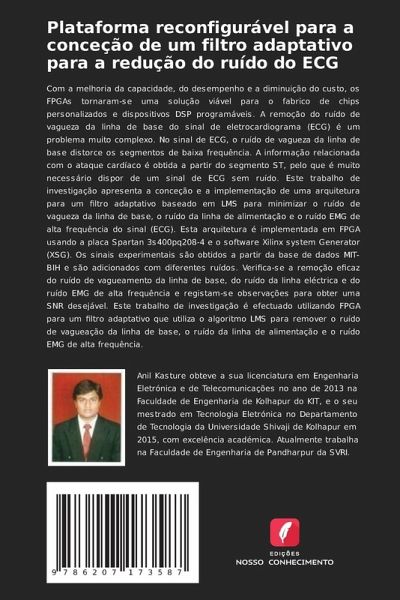 Com a melhoria da capacidade, do desempenho e a diminuição do custo, os FPGAs tornaram-se uma solução viável para o fabrico de chips personalizados e dispositivos DSP programáveis. A remoção do ruído de vagueza da linha de base do sinal de eletrocardiograma (ECG) é um problema muito complexo. No sinal de ECG, o ruído de vagueza da linha de base distorce os segmentos de baixa frequência. A informação relacionada com o ataque cardíaco é obtida a partir do segmento ST, pelo que é muito necessário dispor de um sinal de ECG sem ruído. Este trabalho de investigação apresenta a conceção e a implementação de uma arquitetura para um filtro adaptativo baseado em LMS para minimizar o ruído de vagueza da linha de base, o ruído da linha de alimentação e o ruído EMG de alta frequência do sinal (ECG). Esta arquitetura é implementada em FPGA usando a placa Spartan 3s400pq208-4 e o software Xilinx system Generator (XSG). Os sinais experimentais são obtidos a partir da base de dados MIT-BIH e são adicionados com diferentes ruídos. Verifica-se a remoção eficaz do ruído de vagueamento da linha de base, do ruído da linha eléctrica e do ruído EMG de alta frequência e registam-se observações para obter uma SNR desejável. Este trabalho de investigação é efectuado utilizando FPGA para um filtro adaptativo que utiliza o algoritmo LMS para remover o ruído de vagueação da linha de base, o ruído da linha de alimentação e o ruído EMG de alta frequência.