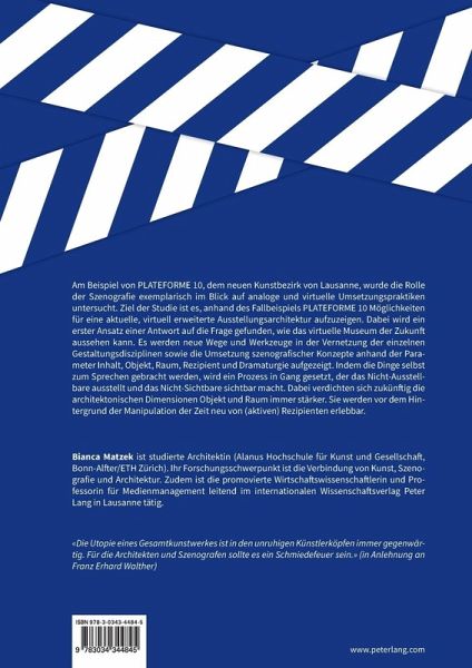 Am Beispiel von PLATEFORME 10, dem neuen Kunstbezirk von Lausanne, wurde die Rolle der Szenografie exemplarisch im Blick auf analoge und virtuelle Umsetzungspraktiken untersucht. Ziel der Studie ist es, anhand des Fallbeispiels PLATEFORME 10 Möglichkeiten für eine aktuelle, virtuell erweiterte Ausstellungsarchitektur aufzuzeigen. Dabei wird ein erster Ansatz einer Antwort auf die Frage gefunden, wie das virtuelle Museum der Zukunft aussehen kann. Es werden neue Wege und Werkzeuge in der Vernetzung der einzelnen Gestaltungsdisziplinen sowie die Umsetzung szenografischer Konzepte anhand der Parameter Inhalt, Objekt, Raum, Rezipient und Dramaturgie aufgezeigt. Indem die Dinge selbst zum Sprechen gebracht werden, wird ein Prozess in Gang gesetzt, der das Nicht-Ausstellbare ausstellt und das Nicht-Sichtbare sichtbar macht. Dabei verdichten sich zukünftig die architektonischen Dimensionen Objekt und Raum immer stärker. Sie werden vor dem Hintergrund der Manipulation der Zeit neu von (aktiven) Rezipienten erlebbar.