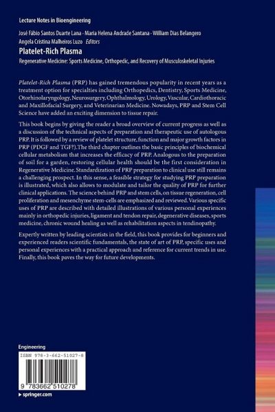 "The focus of this wonderful book is on the foundation, impact, application, and future of platelet-rich plasma (PRP). ... A broad audience of primary care physicians and surgeons, as well as researchers and clinicians, will benefit from the information and direction that this book provides. ... it is well organized and provides a great deal of valuable information that is easy to follow and retrieve. This is an excellent, foundational book on PRP." (Mark R. Hutchinson, Doody's Book Reviews, February, 2014)