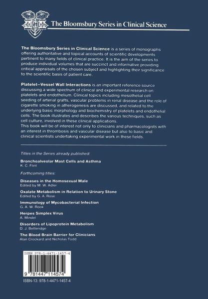 The publication of Platelet-Vessel Wall Interactions, the second monograph in the Bloomsbury Series in Clinical Science, is particu larly welcome as its appearance signifies the further development of the Series and its potential for the future. The theme of this monograph is the pathophysiology of atherosclerosis, a topic that symbolises the aim of the Series, namely to highlight the important interfaces between basic medical science and clinical practice. Our congratulations to the Editors and contributors. London, December 1987 lack Tinker Preface In the Western world, atherosclerosis causes more illness and death than any other disease. Despite its devastating effects, the pathogenesis of the disease remains a matter for hypothesis and con jecture. This monograph owes its conception to a programme of work directed towards understanding the basic pathophysiology of atherosclerosis. The circulatory system is lined by vascular endothelium which has a central role in maintaining the integrity of the vessel wall and prevent ing thrombosis. The natural equilibrium existing between normal en dothelium which supports blood flow, and platelets which serve to re pair damaged endothelium, is explored in the first two chapters. Atherosclerosis developing as a response to endothelial injury is one hypothesis which has stimulated widespread interest, and re search has largely been directed towards finding the injurious agent.