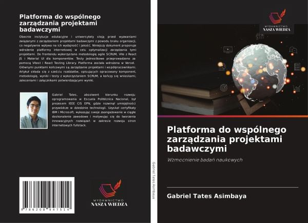 Obecnie instytucje edukacyjne i uniwersytety stoj¿ przed wyzwaniami zwi¿zanymi z zarz¿dzaniem projektami badawczymi z powodu braku organizacji, co negatywnie wp¿ywa na ich wydajno¿¿ i jako¿¿. Niniejszy dokument proponuje wdro¿enie platformy internetowej w celu optymalizacji zarz¿dzania tymi projektami. Do frontendu wykorzystano metodologi¿ agile SCRUM, Vite z React JS i Material UI dla komponentów. Testy jednostkowe przeprowadzono za pomoc¿ Vitest i React Testing Library. Platforma zostäa wdro¿ona w Vercel. G¿ównymi punktami ko¿cowymi s¿ zarz¿dzanie projektami i wspó¿pracownikami. Artyku¿ sk¿ada si¿ z sze¿ciu rozdziäów, opisuj¿cych opracowany komponent, metodologi¿, wyniki i testy z wykorzystaniem SCRUM, a ko¿czy si¿ wnioskami, zaleceniami i zä¿cznikami potwierdzaj¿cymi wyniki.