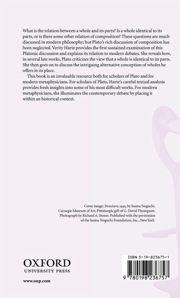 What is the relation between a whole and its parts? The metaphysics of structure and composition is much discussed in modern philosophy; now Verity Harte provides the first sustained examination of Plato's rich but neglected discussion of the topic, and shows how it can illuminate current debates. This book is an invaluable resource both for scholars of Plato and for modern metaphysicians.