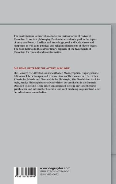 Die einzelnen Beiträge dieses Bandes sind unterschiedlichen Formen der Wiederbelebung des Platonismus innerhalb der antiken Philosophie gewidmet. Besondere Aufmerksamkeit ist den Themen der Einheit und der Schönheit, des Geistes und der Erkenntnis, der Seele und des Leibes, der Tugend und des Glücks sowie der politischen und der religiösen Dimension des platonischen Denkens gewidmet. Ausgehend von Platon und Aristoteles werden die Verwandlungsformen von Platonismus, insbesondere bei den Neuplatonikern Plotin, Porphyrios, Jamblich, Themistios, Proklos und Marinos sowie bei den christlichen Autoren Augustin, Boethius und Dionysios Areopagites untersucht. Die Autoren des Bandes knüpfen dabei in vielfältiger Weise an die Arbeiten von Dominic J. O'Meara an. Die Weiterführung seiner Ansätze rückt insbesondere die spätplatonische Ethik in ein neues Licht. Die jeweiligen Studien tragen darüber hinaus zur Erforschung der vielfältigen Bezüge der Platoniker aufeinander sowie auf andere Denker bei. Das Buch macht in seiner ganzen Breite das Erneuerungs- und Verwandlungspotenzial des antiken Platonismus deutlich.