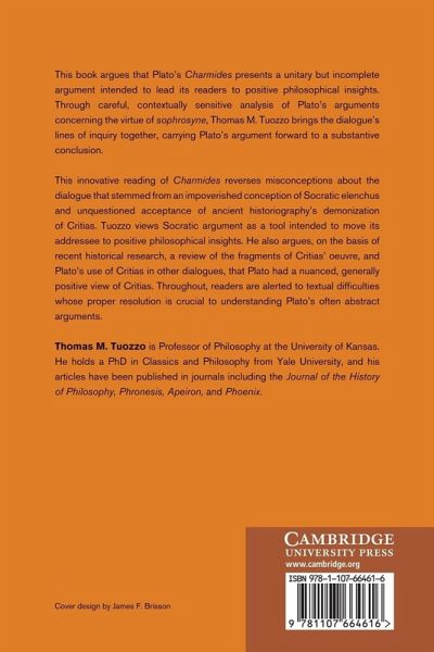 This book argues that Plato's Charmides presents a unitary but incomplete argument intended to lead its readers to substantive philosophical insights. Through careful, contextually sensitive analysis of Plato's arguments concerning the virtue of sophrosyne, Thomas M. Tuozzo brings the dialogue's lines of inquiry together, carrying Plato's argument forward to a substantive conclusion. This innovative reading of Charmides reverses misconceptions about the dialogue that stemmed from an impoverished conception of Socratic elenchus and unquestioned acceptance of ancient historiography's demonization of Critias. It views Socratic argument as a tool intended to move its addressee to substantive philosophical insights. It also argues, on the basis of recent historical research, a review of the fragments of Critias' oeuvre and Plato's use of Critias in other dialogues, that Plato had a nuanced, generally positive view of Critias. Throughout, readers are alerted to textual difficulties whose proper resolution is crucial to understanding Plato's often abstract arguments.