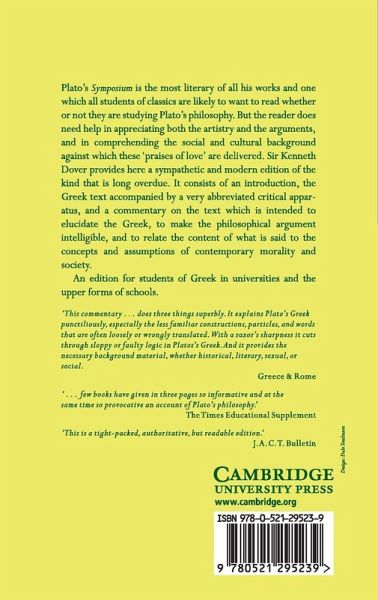 Plato's Symposium is the most literary of all his works and one which all students of classics are likely to want to read. Sir Kenneth Dover provides here a sympathetic and modern edition of the kind that is long overdue.