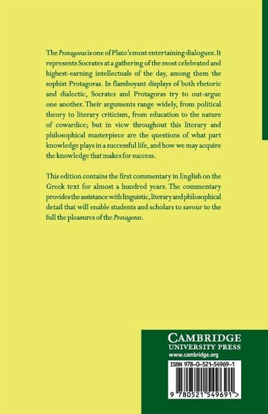 This book provides an English commentary on the Greek text of this important work, giving full assistance with literary, linguistic and philosophical questions. The last such edition of the Protagoras was first published over a century ago.