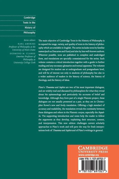 Plato's Theaetetus and Sophist are two of his most important dialogues and are widely discussed by philosophers. With a supporting introduction and notes, this new and lively translation is the first to present both dialogues together and will pave the way for fresh interpretations of Plato's writings in general.