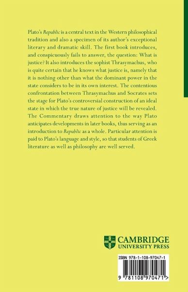 Offers intermediate Greek students a reliable, up-to-date introduction to Plato's most influential work. Plato's Greek is not difficult, but his ideas have generated considerable controversy. Book I serves as a dramatic introduction to them, with its memorable confrontation between Socrates and the sophist Thrasymachus over the nature of justice.