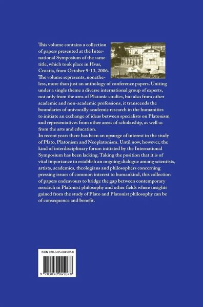 The volume contains a collection of papers presented at the International Symposium, which took place in Hvar, Croatia, in 2006. In recent years there has been an upsurge of interest in the study of Plato, Platonism and Neoplatonism. Taking the position that it is of vital importance to establish an ongoing dialogue among scientists, artists, academics, theologians and philosophers concerning pressing issues of common interest to humankind, this collection of papers endeavours to bridge the gap between contemporary research in Platonist philosophy and other fields where insights gained from the study of Plato and Platonist philosophy can be of consequence and benefit. Authors: Werner Beierwaltes, Luc Brisson, Amber Carpenter, John Dillon, Jonathan Doner, Franco Ferrari, Francesco Fronterotta, F.A.J. de Haas, Aaron Hughes, Byron Kaldis, Daniel Kolak, Thomas Leinkauf, Dionysis Mentzeniotis, Jean-Marc Narbonne, Giannis Stamatellos, Vladimir Stoupel, Patrick Quinn, Jure Zovko and Marie-Élize Zovko