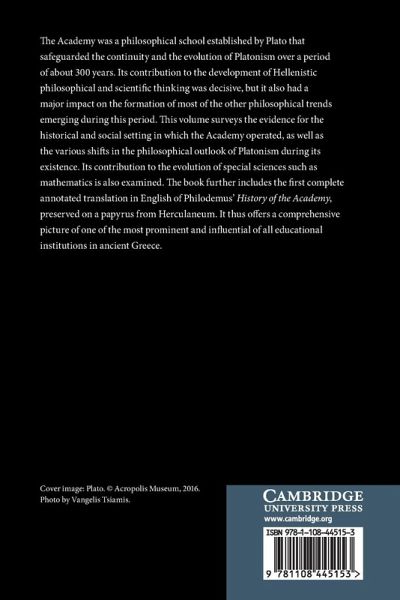 A comprehensive, interdisciplinary history of Plato's Academy, the most prominent philosophical school in antiquity, which lasted for about 300 years. Also includes the first complete annotated translation in English of Philodemus' History of the Academy, preserved on a papyrus from Herculaneum.