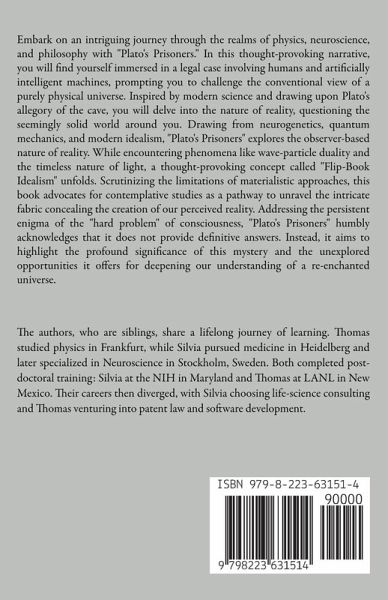 Embark on an intriguing journey through the realms of physics, neuroscience, and philosophy with "Plato's Prisoners." In this thought-provoking narrative, you will find yourself immersed in a legal case involving humans and artificially intelligent machines, prompting you to challenge the conventional view of a purely physical universe. Inspired by modern science and drawing upon Plato's allegory of the cave, you will delve into the nature of reality, questioning the seemingly solid world around you. Drawing from neurogenetics, quantum mechanics, and modern idealism, "Plato's Prisoners" explores the observer-based nature of reality. While encountering phenomena like wave-particle duality and the timeless nature of light, a thought-provoking concept called "Flip-Book Idealism" unfolds. Scrutinizing the limitations of materialistic approaches, this book advocates for contemplative studies as a pathway to unravel the intricate fabric concealing the creation of our perceived reality. Addressing the persistent enigma of the "hard problem" of consciousness, "Plato's Prisoners" humbly acknowledges that it does not provide definitive answers. Instead, it aims to highlight the profound significance of this mystery and the unexplored opportunities it offers for deepening our understanding of a re-enchanted universe.