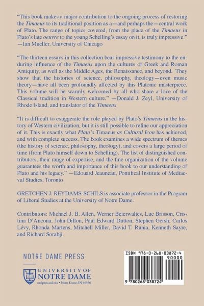 In recent years, Plato's Timaeus has recaptured the interest of scholars, sparking an exploration of the astonishing influence this work has had on a wide range of intellectual traditions. Plato's Timaeus as Cultural Icon brings together a group of leading experts from Canada, the United States, and Europe to examine the reception of Plato's Timaeus throughout history, as well as its impact on major intellectual and cultural traditions. Gretchen J. Reydams-Schils's enlightening introduction tackles the issue of why the Timaeus has enjoyed such tremendous cultural status and sets the stage for the many topics covered in this volume, which include an assessment of the Timaeus's influence on Plato's successors, an examination of how it became connected to traditions of sacred texts, an analysis of the "mind-body problem," the tradition of music and its relation to philosophy, the cultural impact of Calcidius's Latin translation of the work, and the interaction between the Timaeus and Islamic philosophy. As a collaborative effort of expert philosophers, classicists, and historians, this remarkable book serves as a wonderful starting point and research tool for anyone with an interest in Plato's Timaeus.