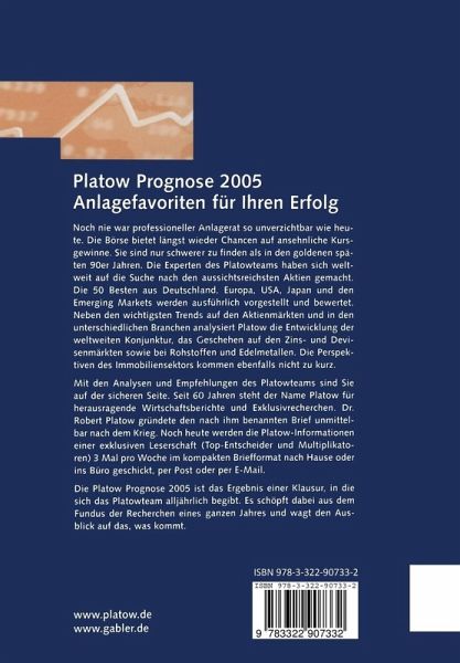 Die Platow Prognose 2005 ist das Ergebnis einer Klausur, in die sich das Platowteam alljährlich begibt. Es schöpft dabei aus dem Fundus der Recherchen eines ganzen Jahres und wagt den Ausblick auf das, was kommt.