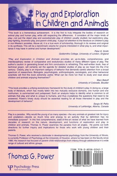 Play is a paradox. Why would the young of so many species--the very animals at greatest risk for injury and predation--devote so much time and energy to an activity that by definition has no immediate purpose? This question has long puzzled students of animal behavior, and has been the focus of considerable empirical investigation and debate. In this first comprehensive and state-of-the-art review of what we have learned from decades of research on exploration and play in children and animals, Power examines the paradox from all angles. Covering solitary activity as well as play with peers, siblings, and parents, he considers the nature, development, and functions of play, as well as the gender differences in early play patterns. A major purpose is to explore the relevance of the animal literature for understanding human behavior. The nature and amount of children's play varies significantly across cultures, so the author makes cross-cultural comparisons wherever possible. The scope is broad and the range multidisciplinary. He draws on studies by developmental researchers in psychology and other fields, ethologists, anthropologists, sociologists, sociolinguists, early childhood educators, and pediatricians. And he places research on play in the context of research on such related phenomena as prosocial behavior and aggression. Finally, Power points out directions for further inquiry and implications for those who work with young children and their parents. Researchers and students will find Play and Exploration in Children and Animals an invaluable summary of controversies, methods, and findings; practitioners and educators will find it an invaluable compendium of information relevant to their efforts to enrich play experiences.
