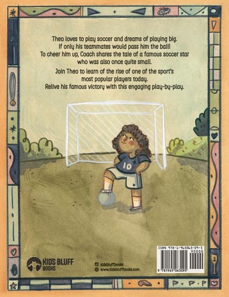 Theo loves everything about soccer but he never gets the ball. Sometimes he thinks it's because he's just too small. Coach tries to cheer him up with the tale of a famous player who was not exactly tall. But with lots of hard work and dedication, he was able to bring home the biggest Cup of all! This delightful rhyming tale inside a story is sure to captivate soccer fans of all ages. Join Theo as he learns about the importance of never giving up and gets to relive the excitement of winning the sport's biggest prize! Can you and your young reader guess who this soccer star might be? Jump into Play Big and get inspired by none other than Argentina's favorite Flea.