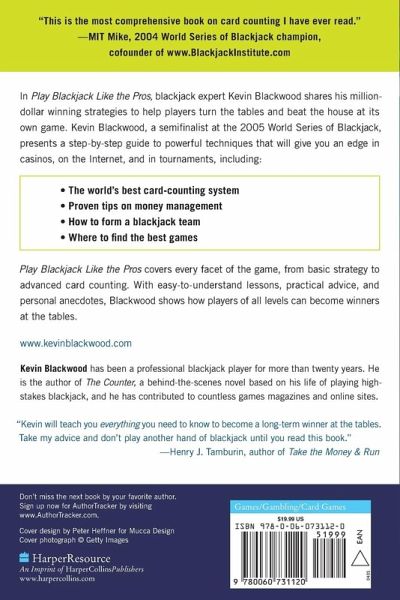 Professional blackjack player Kevin Blackwood shares his million-dollar winning strategies for mastering the odds and consistently beating the house at their own game. Play Blackjack Like the Pros is the requisite introduction to the modern game of blackjack, including high and low stakes casino, shoe games (several decks shuffled together), online, and tournaments. Blackwood begins with the basic rules of play and then moves on to teach his proven card-counting method, broken-down into three levels: novice, recreational, and professional. He also covers camouflaging techniques (it's perfectly legal to count cards, but if the house catches you they will kick you out), money management, and team play. Blackwood includes many stories of his and other professionals' triumphs at the tables and keeps the highly technical language that bogs down most gaming books to an absolute minimum. Play Blackjack Like the Pros is written in the style of Phil Hellmuth's Play Poker Like the Pros using easy-to-understand lessons that all levels of players can quickly benefit from. Blackwood is one of the world's top card counters. He began with only a few hundred dollars and has won over a million playing blackjack. In Play Blackjack Like the Pros he demonstrates how to earn over $10,000 a month from just a few days work. Blackjack is set to balloon in popularity. Ben Mezrich's book on the MIT card counting team Bringing Down the House was on the New York Times bestseller list for weeks and is being made into a movie staring Kevin Spacey. Blackjack Tournaments are growing in popularity with many of the top casinos offering large prize pools. Online Blackjack is currently a multi-million dollar industry. Blackwood keeps the highly technical language that bogs down most gaming books to an absolute minimum. Foreword by Stanford Wong, author of Professional Blackjack and the master of modern card counting.