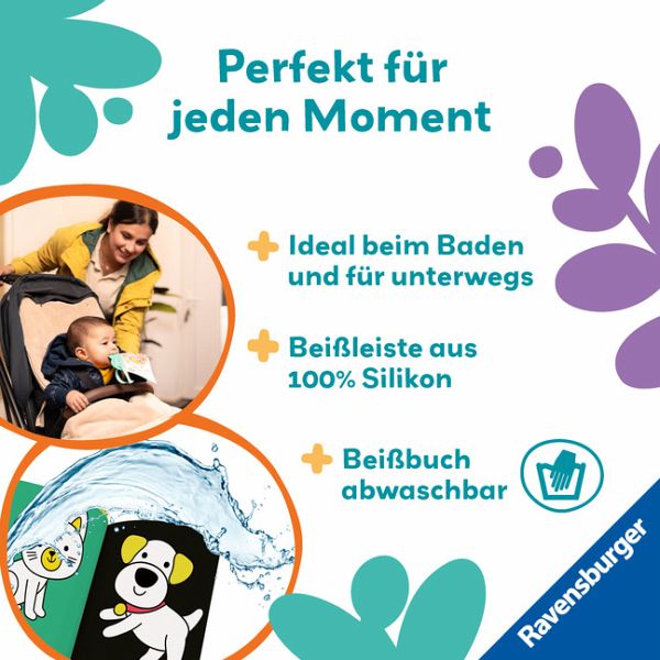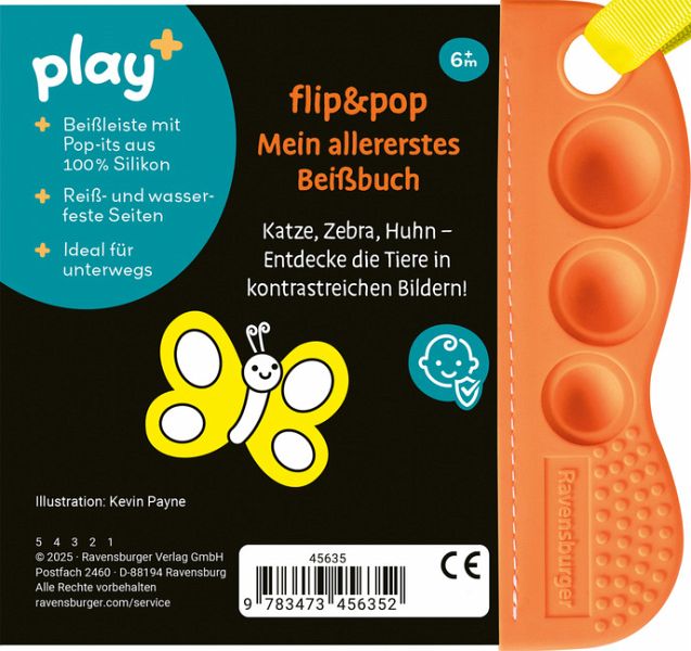 Dieses Buch bietet mit der genoppten Silikon-Leiste großen Beiß- und Spielspaß für Babys ab 6 Monaten. Mit unzerreißbaren und wasserfesten Seiten ist das Buch nicht nur ideal für Kinderhände und der perfekte Begleiter für unterwegs, sondern beschäftigt Babys auch beim Baden. Die lustigen Pop-its laden dazu ein, die Welt mit den Händen zu erkunden und fördern ganz nebenbei spielerisch die Feinmotorik. Große Kontrastbilder fördern zudem Babys erste visuelle Wahrnehmung.