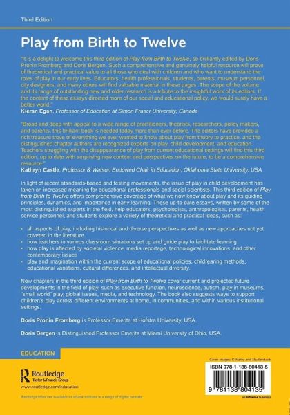 "It is a delight to welcome this third edition of Play from Birth to Twelve, so brilliantly edited by Doris Pronin Fromberg and Doris Bergen. Such a comprehensive and genuinely helpful resource will prove of theoretical and practical value to all those who deal with children and who want to understand the roles of play in our early lives. Educators, health professionals, students, parents, museum personnel, city designers, and many others will find valuable material in these pages. The scope of the volume and its range of outstanding new and older research is a tribute to the insightful work of its editors. If the content of these essays directed more of our social and educational policy, we would surely have a better world."