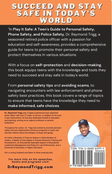 "In Play It Safe: A Teen's Guide to Personal Safety, Phone Safety, and Police Safety, Dr. Raymond Trigg, a seasoned retired police officer with a passion for education and self-awareness, provides a comprehensive guide for teens to promote their personal safety and protect themselves in various situations. With a focus on self-protection and decision-making, this book equips teens with the knowledge and tools they need to succeed and stay safe in today's world. From personal safety tips and avoiding scams, to navigating encounters with law enforcement and phone safety best practices, this book covers a range of topics to ensure that teens have the knowledge they need to make informed, safe choices.
