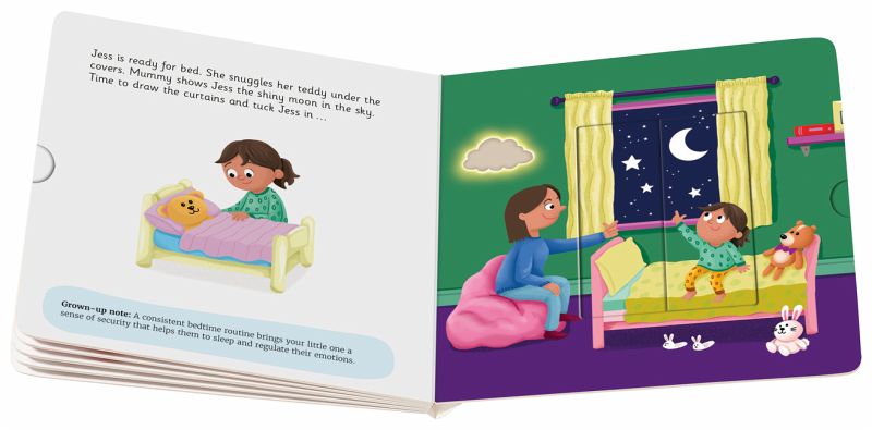 It's the end of a busy day and time for bed. But there are a few things to do to get ready. Learn about bedtime routines together in this baby book - as you read, find out about what the children in the book do before they go to bed, from story time to brushing teeth and more. There are playful sliders on each page to add interactive fun. Me and My Day: Bedtime includes some handy parental tips too.