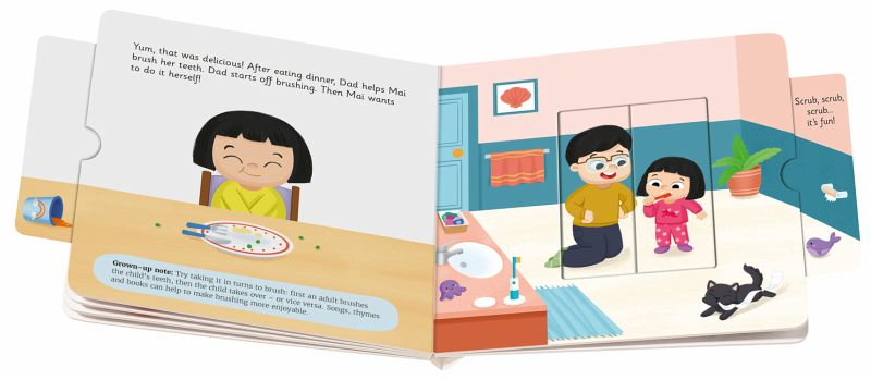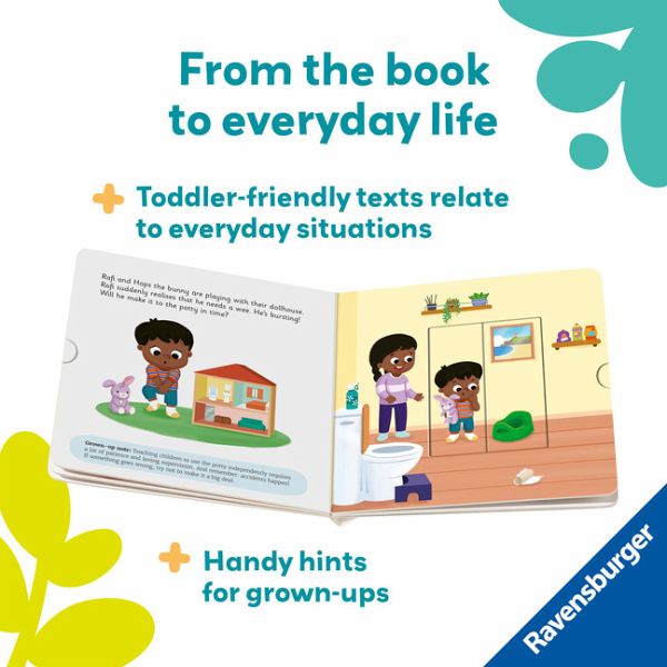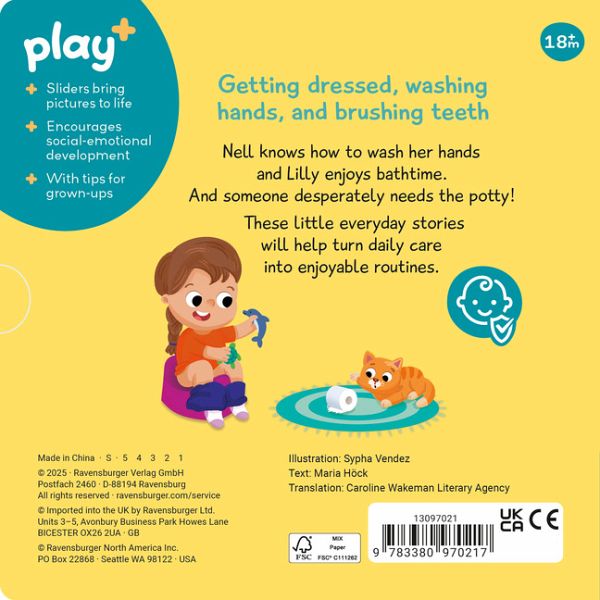 Nell washes her hands and Rafi goes to the potty. This first book with sliders playfully introduces children aged 18 months and older to everything to do with the bathroom. The sliders actively involve children in the action on the pages. Just pull the slider out and the teeth are brushed and the hair is washed!