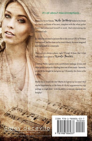 It's all about misconceptions... Burned by his ex-fiancée, Mike Withers traded in his dream of a family and home of his own, complete with the white picket fence, and submersed himself in work. And entertaining the occasional lady. So, when he relocated to Jacksonville to take over as CEO of Withers International, and be closer to his sister's family, he never imagined he'd find himself at a crossroads. Once a player, always a player, right? Wrong! At least, that's what Mike now has to prove to Nicole Baxter... Combine Nikki's games with a problematic mélange of exes, and Mike quickly realizes he's heading down one of two roads - heartache, or the life he thought he had given up. Ultimately, the choice is his to make. Maybe his ex wasn't the one? Maybe he'd given up too soon? And maybe happiness lay in the form of a feisty, argumentative, tiny package in a tight skirt - with the ability to turn any argument into foreplay?