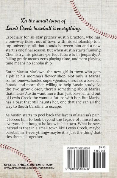 In the small town of Lewis Creek, baseball is everything. Especially for all-star pitcher Austin Braxton, who has a one-way ticket out of town with his scholarship to a top university. All that stands between him and a new start is one final season. But when Austin starts flunking Chemistry, his picture-perfect future is in jeopardy. A failing grade means zero playing time, and zero playing time means no scholarship. Enter Marisa Marlowe, the new girl in town who gets a job at his momma's flower shop. Not only is Marisa some home-schooled super-genius, she's also a baseball fanatic and more than willing to help Austin study. As the two grow closer, there's something about Marisa that makes Austin want more than just baseball and out of Lewis Creek--he wants a future with her. But Marisa has a past that still haunts her, one that she ran all the way to South Carolina to escape. As Austin starts to peel back the layers of Marisa's pain, it forces him to look beyond the façade of himself and everyone he thought he knew in his town. What he sees instead is that in a small town like Lewis Creek, maybe baseball isn't everything--maybe it is just the thing that ties them all together.