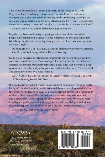 Play On! is a warm and entertaining novel set in a retirement community. In pursuit of an improbable goal, Maxine gathers an eclectic band of bridge buddies from her community and a few eccentric young people for an adventure that becomes part cat-and-mouse caper and part soul-searching quest. Together, they confront age discrimination, a nearly estranged daughter, the tribulations of technology, and a cunning adversary. Ultimately, however, Maxine s greatest challenge comes from within. In the end, she has 24 hours to set things right. Play On! celebrates the resiliency and creativity of characters who acknowledge their own mortality while embracing the life-affirming values of friendship and solidarity. Breaking through the limitations of age, they pursue their dreams with grace, great good humor, and a skilled sense of gamesmanship.