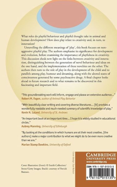 What role does playful behaviour and playful thought take in animal and human development? How does play relate to creativity and, in turn, to innovation? Unravelling the different meanings of 'play', this book focuses on non-aggressive playful play. The authors emphasise its significance for development and evolution, before examining the importance of playfulness in creativity. This discussion sheds new light on the links between creativity and innovation, distinguishing between the generation of novel behaviour and ideas on the one hand, and the implementation of these novelties on the other. The authors then turn to the role of play in the development of the child and to parallels between play, humour and dreaming, along with the altered states of consciousness generated by some psychoactive drugs. A final chapter looks forward to future research and to what remains to be discovered in this fascinating and important field.