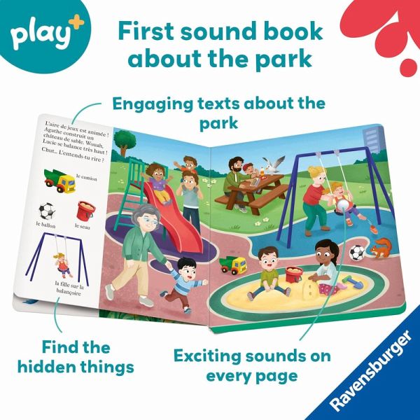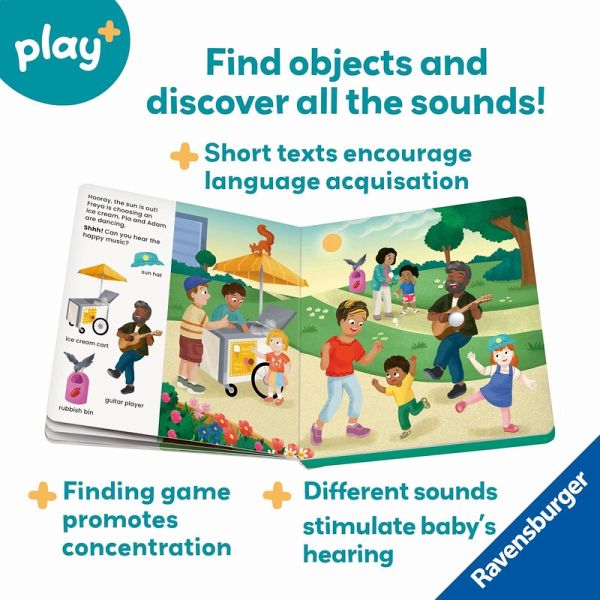Who's barking so loudly? And where is Noah going on his balance bike? There's so much to discover in the park! Five fun sounds make exploring the playground, the pond, and the rain even more fun for children aged 12 months and up. With large, easy-to-press buttons on each page, the fun never stops. The simple text and bright illustrations help to boost language development as children and grown-ups explore each page together.