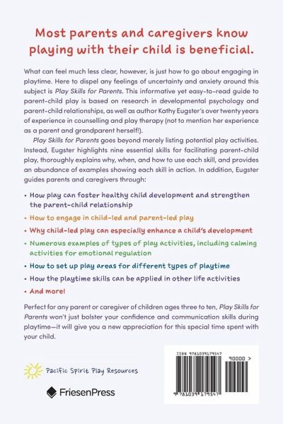 Most parents and caregivers know playing with their child is beneficial. What can feel much less clear, however, is just how to go about engaging in playtime. Here to dispel any feelings of uncertainty and anxiety around this subject is Play Skills for Parents. This informative yet easy-to-read guide to parent-child play is based on research in developmental psychology and parent-child relationships, as well as author Kathy Eugster's over twenty years of experience in counselling and play therapy (not to mention her experience as a parent and grandparent herself!). Play Skills for Parents goes beyond merely listing potential play activities. Instead, Eugster highlights nine essential skills for facilitating parent-child play, thoroughly explains why, when, and how to use each skill, and provides an abundance of examples showing each skill in action. In addition, Eugster guides parents and caregivers through: ¿ How play can foster healthy child development and strengthen the parent-child relationship ¿ How to engage in child-led and parent-led play ¿ Why child-led play can especially enhance a child's development ¿ Numerous examples of types of play activities, including calming activities for emotional regulation ¿ How to set up play areas for different types of playtime ¿ How the playtime skills can be applied in other life activities ¿ And more! Perfect for any parent or caregiver of children ages three to ten, Play Skills for Parents won't just bolster your confidence and communication skills during playtime-it will give you a new appreciation for this special time spent with your child.