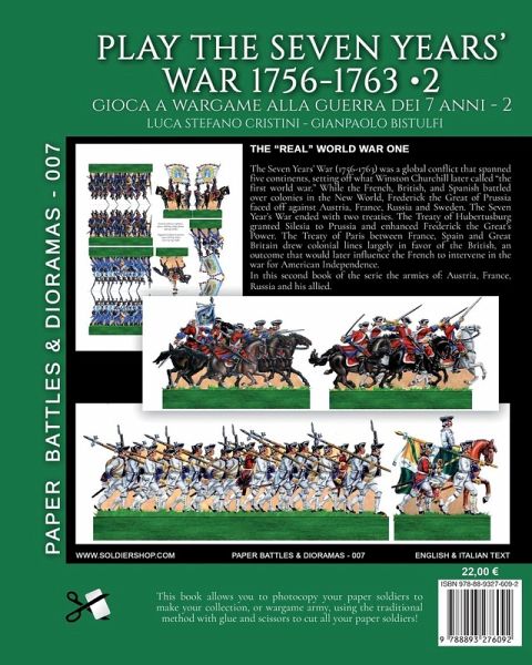 La Guerra dei Sette Anni (1756-1763) fu un conflitto globale che abbracciava i cinque continenti, scatenando quella che Winston Churchill chiamò più tardi "la prima guerra mondiale". Mentre i francesi, gli inglesi e gli spagnoli combattevano per le colonie del Nuovo Mondo, Federico il Grande di Prussia si scontrava con Austria, Francia, Russia e Svezia. La Guerra dei Sette Anni si concluse con due trattati: il Trattato di Hubertusburg concesse la Slesia alla Prussia e rafforzò il potere di Federico il Grande, il Trattato di Parigi tra Francia, Spagna e Gran Bretagna tracciò linee coloniali in gran parte a favore degli inglesi, un risultato che avrebbe poi influenzato i francesi a intervenire nella guerra per l'indipendenza americana. In questo primo libro della serie: gli eserciti di Prussia, Gran Bretagna, Hannover e i suoi alleati.The Seven Years' War (1756-1763) was a global conflict that spanned five continents, setting off what Winston Churchill later called "the first world war". While the French, British and Spanish battled over colonies in the New World, Frederick the Great of Prussia faced off against Austria, France, Russia and Sweden. The Seven Years's War ended with two treaties: the Treaty of Hubertusburg granted Silesia to Prussia and enhanced Frederick the Great's Power, the Treaty of Paris between France, Spain and Great Britain drew colonial lines largely in favor of the British, an outcome that would later influence the French to intervene in the war for American Independence. In this first book of the series: the armies of Prussia, Great Britain, Hannover and its Allied.