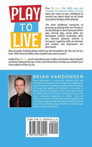 Play To Live: Life Skills and Joy Through The Natural Talent To Play by author Brian VanDongen takes you back to your childhood to remind you about what being a child is all about. Playing! We all have those fond childhood memories of growing up playing with our friends in social settings. Developing social skills and learning how to handle friendships and relationships. What we didn't realize at the time was that those skills we learned for the building blocks which lay the foundation for the rest of our lives. What are our children learning right now? How are they playing now and what part are we playing in how our children interact with the world around them. For many children, their idea of play and playing now consists of talking to friends online and playing with electronic devices, staying safe indoors, and not venturing further than their own small safe world which we have created. Inside Play To Live you'll discover: Understanding what it means to play! Where has play gone and what has changed? Playing inside the box. The simplicity of children. Running with scissors. Are we too overprotective? Climbing up the slide and thinking outside the box! It's time to get outside and rediscover nature! That play is serious business and so much more! Inside Play To Live: Life Skills and Joy Through The Natural Talent To Play you'll read about case studies and reports followed by tips, tricks, and information to help you. If you would like to rediscover what it means to play, then grab a copy of Play To Live right now!