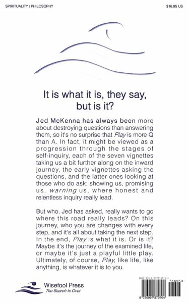 It is what it is, they say, but is it? Jed McKenna has always been more about destroying questions than answering them, so it's no surprise that Play is more Q than A. In fact, it might be viewed as a progression through the stages of self-inquiry, each of the seven vignettes taking us a bit further along on the inward journey, the early vignettes asking the questions, and the latter ones looking at those who do ask; showing us, promising us, warning us, where honest and relentless inquiry really lead. But who, Jed has asked, really wants to go where this road really leads? On this journey, who you are changes with every step, and it's all about taking the next step. In the end, Play is what it is. Or is it? Maybe it's the journey of the examined life, or maybe it's just a playful little play. Ultimately, of course, Play, like life, like anything, is whatever it is to you.