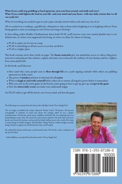What if you could stop paddling so hard upstream, turn your boat around, and smile and wave? What if you could lighten the load in your life--and your mind and your heart--with tiny daily actions that we all can easily do? What if everything you needed to get to such a place already existed within each and every one of us? All we needed was a roadmap, a guidebook, a blueprint to take us from others laughing at us to laughing with us? From being against a cause to creating our own? From surviving to thriving? In best-selling author Bradley Charbonneau's latest book PLAY, you'll uncover your own natural playful state is our default state, it's where we're supposed to be living, it's where we shine. It's where we belong. I almost don't dare use this word but it's the best word I can find at the moment. Who knows, maybe you'll read the book, arrive at your own level of PLAY, and share with me a word that you feel best describes the mindset we have now achieved. But that word, that feeling, that way of being, is, I know, I know, it's a biggie, but here it is: enlightenment. Now before you put on a robe and move to a mountaintop in Nepal, hear me out. My first book with my boys (The Secret of Kite Hill) turned a regular, daily, boring walk home from school into a magical, unforgettable, and playful story that became the launch pad for not only my writing career, but the relationship I had with my kids--and myself. PLAY is a place yet it's not on a map PLAY is something we all have access to yet few can find it PLAY is a higher place This book contains more than words on pages. The bonus materials give you immediate access to videos, blog posts, interviews and podcasts that enhance, explain and entice you to become the architect of your destiny and live a lighter, freer, more playful life. In this book, you'll discover: How (and why) some people seem to float through life on a yacht sipping cocktails while others are paddling upstream in a leaky canoe The power of mindset and how it's the basis for all action When to laugh at (and with) yourself before others do to remove all negative power before it materializes Why you can't sit the entire game on the bench, you're going to have to get up, give up, and get in the game How the tiniest daily events can make your exuberantly happy Get PLAY today to get off the bench, out of your mind, and into the game. This is book 10 in the Repossible Series. Repossible Every Single Day Ask Dare Create Decide Meditate Spark Surrender Play Celebrate Evaluate Elevate