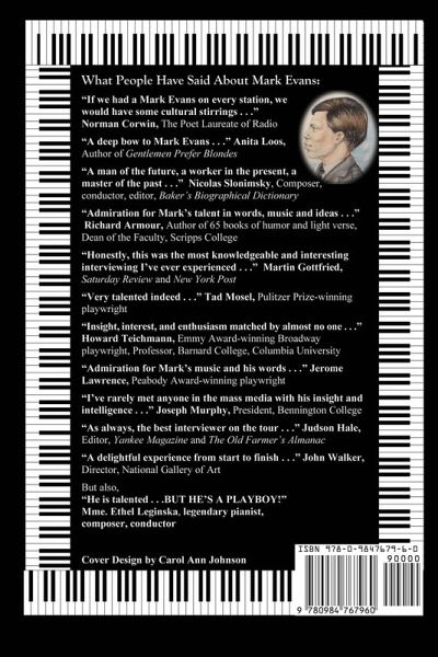 "Author Dr. Mark Evans presents an extended set of profiles of distinguished men and women he has known as teachers, mentors, friends, colleagues, and guests on the radio and television programs he has produced. The emphasis is on figures in music, literature, theater, film, and the visual arts. Subjects include world-renowned composers, performing musicians, writers for screen and stage, novelists, poets, actors, dancers, painters, animators, book illustrators, and educators of great achievement. They are primarily American, but also include accomplished figures from the United Kingdom, Ireland, Continental Europe, Australia, Cuba, and South America"--