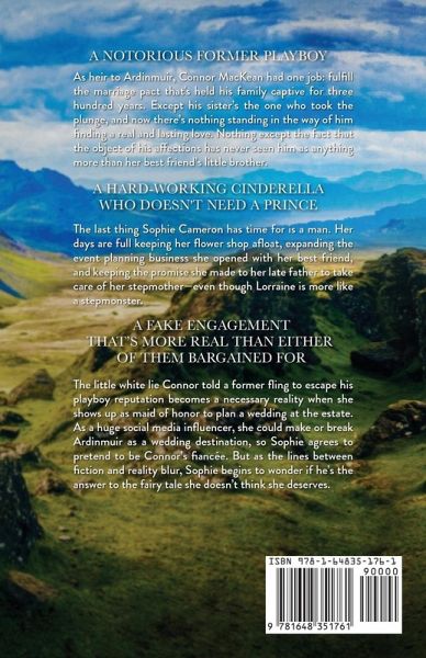 A notorious former playboy As heir to Ardinmuir, Connor MacKean had one job: fulfill the marriage pact that's held his family captive for three-hundred years. Except his sister's the one who took the plunge, and now there's nothing standing in the way of him finding a real and lasting love. Nothing except the fact that the object of his affections has never seen him as anything more than her best friend's little brother. A hard-working Cinderella who doesn't need a prince The last thing Sophie Cameron has time for is a man. Her days are full keeping her flower shop afloat, expanding the event planning business she opened with her best friend, and keeping the promise she made to her late father to take care of her stepmother--even though Lorraine is more like a stepmonster. A fake engagement that's more real than either of them bargained for The little white lie Connor told a former fling to escape his playboy reputation becomes a necessary reality when she shows up as maid of honor to plan a wedding at the estate. As a huge social media influencer, she could make or break Ardinmuir as a wedding destination, so Sophie agrees to pretend to be Connor's fiancée. But as the lines between fiction and reality blur, Sophie begins to wonder if he's the answer to the fairy tale she doesn't think she deserves.