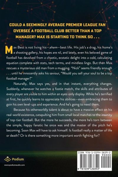 Could a seemingly average Premier League fan oversee a football club better than a top manager? Max is starting to think so . . . Max Best is not living his—ahem—best life. His job’s a drag, his home’s a shooting gallery, his hopes are nil, and lately, even his beloved game of football has devolved from a chaotic, ecstatic delight into a cold, calculating equation complete with stats, tech terms, and mindless lingo. But then Max rescues a mysterious old man from a mugging. “Nick” seems friendly enough . . . until he innocently asks his saviour, “Would you sell your soul to be a top football manager?" Naturally, Max says yes, and in that instant, everything changes. Suddenly, whenever he watches a footie match, the skills and attributes of every player are visible to him within an eyes-only display. While he’s terrified at first, he quickly learns to appreciate his abilities—even embracing them to gain his own level-ups and experience. And he’s going to need them. Because his otherworldly talent is about to have a massive effect on his real-world existence, catapulting him from small local matches to the insanity of top-tier football. But the more he succeeds, the more he’s torn between the simple, happy fanatic he once was and the master of the pitch he’s becoming. Soon Max will have to ask himself: Is football really a matter of life or death? Or is there something more important worth fighting for?