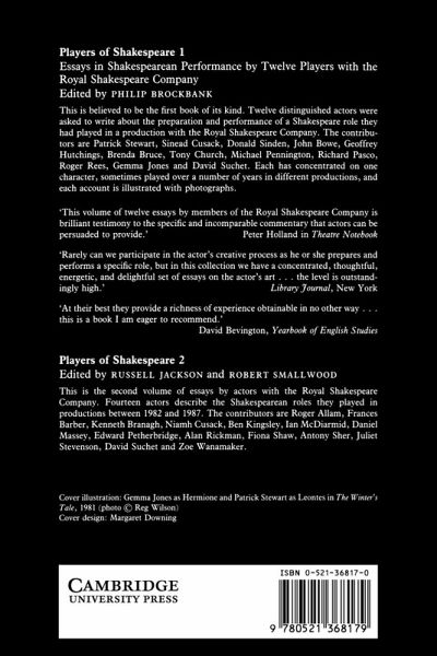 This is believed to be the first book of its kind. Twelve distinguished actors were asked to write about the preparation and performance of Shakespeare role they had played in a production with the Royal Shakespeare Company.
