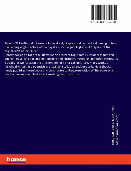 Players Of The Period - A series of anecdotal, biographical, and critical monographs of the leading english actors of the day is an unchanged, high-quality reprint of the original edition of 1891.Hansebooks is editor of the literature on different topic areas such as research and science, travel and expeditions, cooking and nutrition, medicine, and other genres. As a publisher we focus on the preservation of historical literature. Many works of historical writers and scientists are available today as antiques only. Hansebooks newly publishes these books and contributes to the preservation of literature which has become rare and historical knowledge for the future.