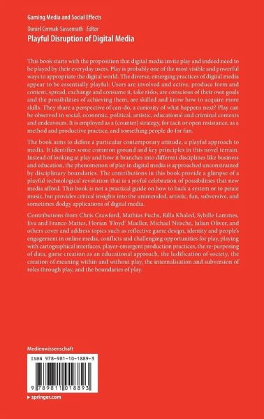 The book aims to define a particular contemporary attitude, a playful approach to media. It identifies some common ground a nd key principles in this novel terrain. Instead of looking at play and how it branches into different disciplines like business and education, the phenomenon of play in digital media is approached unconstrained by disciplinary boundaries. The contributions in this book provide a glimpse of a playful technological revolution that is a joyful celebration of possibilities that new media afford. This book is not a practical guide on how to hack a system or to pirate music, but provides critical insights into the unintended, artistic, fun, subversive, and sometimes dodgy applications of digital media.