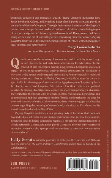 Questions about the meaning of womanhood and femininity loomed large in late nineteenth- and early twentieth-century French culture. In Playing Cleopatra, Holly Grout uses the theater--specifically, Parisian stage performances of the Egyptian queen Cleopatra by Sarah Bernhardt, Colette, and Josephine Baker--to explore these cultural and political debates. How and why did portrayals of Cleopatra influence French attitudes regarding race, sexuality, and gender? To what extent did Bernhardt, Colette, and Baker manipulate the image of Cleopatra to challenge social norms and to generate new models of womanhood? Why was Cleopatra--an ancient, mythologized queen--the chosen vehicle for these spectacular expressions of modern womanhood? In the context of late nineteenth-century Egyptomania, Cleopatra's eroticized image--as well as her controversial legacy of female empowerment--resonated in new ways with a French public engaged in reassessing feminine sexuality, racialized beauty, and national identity. By playing Cleopatra, Bernhardt, Colette, and Baker did more than personify a character; they embodied the myriad ways in which celebrity was racialized, gendered, and commoditized, and they generated a model of female stardom that set the stage for twentieth-century celebrity long before the Hollywood machine's mass manufacture of "stars." At the same time, these women engaged with broader debates regarding the meaning of womanhood, celebrity, and Frenchness in the tumultuous decades before World War II. Drawing on plays, periodicals, autobiographies, personal letters, memoirs, novels, works of art, and legislation, Playing Cleopatra contributes to a growing body of literature that examines how individuals subverted the prevailing gender norms that governed relations between the sexes in liberal democratic regimes. By offering employment, visibility, and notoriety, the theater provided an especially empowering world for women, in which the roles they played both reflected and challenged contemporary cultural currents. Through the various iterations in which Bernhardt, Colette, and Baker played Cleopatra, they not only resurrected an ancient queen but also appropriated her mystique to construct new narratives of womanhood.